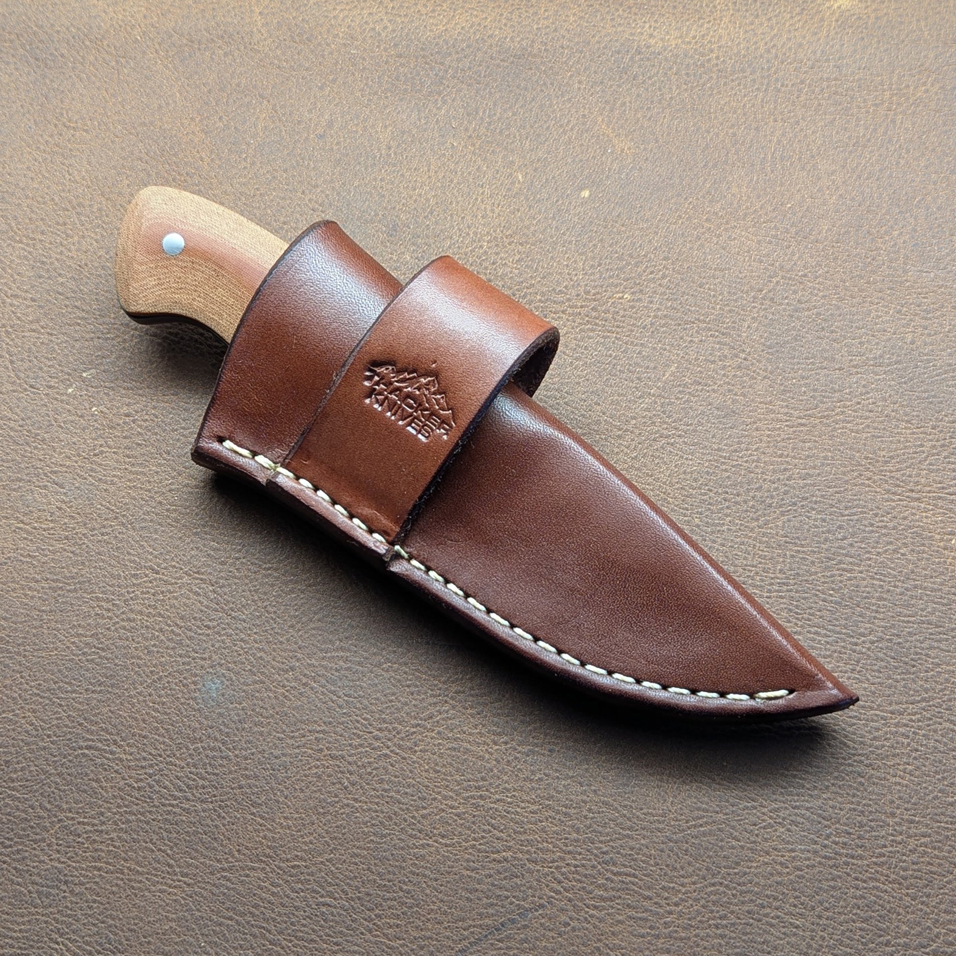 This is the first knife model made by Thacker Knives. The Premier EDC is lightweight, compact, and extremely practical. This latest batch still has the tough 80CrV2 blade, but with an added Cerakote finish for some extra durability and corrosion resistance. Each knife includes a handmade leather sheath designed for a vertical carry, or cross-draw. The Premier EDC - Cerakote is a robust, handy little knife that is just at home skinning an elk or opening a package.