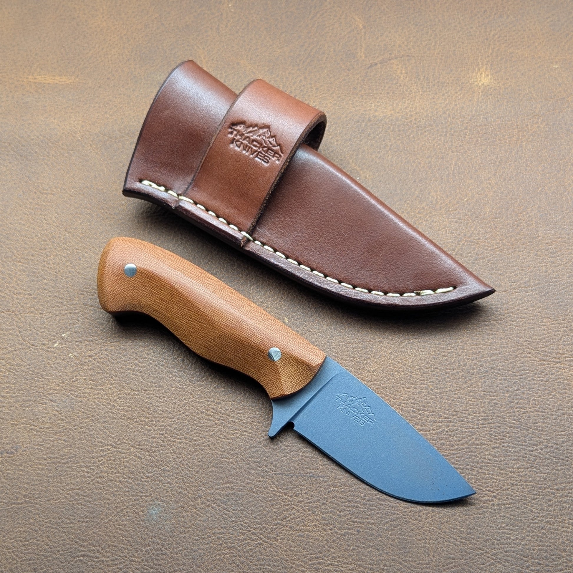 This is the first knife model made by Thacker Knives. The Premier EDC is lightweight, compact, and extremely practical. This latest batch still has the tough 80CrV2 blade, but with an added Cerakote finish for some extra durability and corrosion resistance. Each knife is still handmade right here and includes a handmade leather sheath designed for a vertical carry, or cross-draw. The Premier EDC - Cerakote is a robust, handy little knife that is just at home skinning an elk or opening a package.