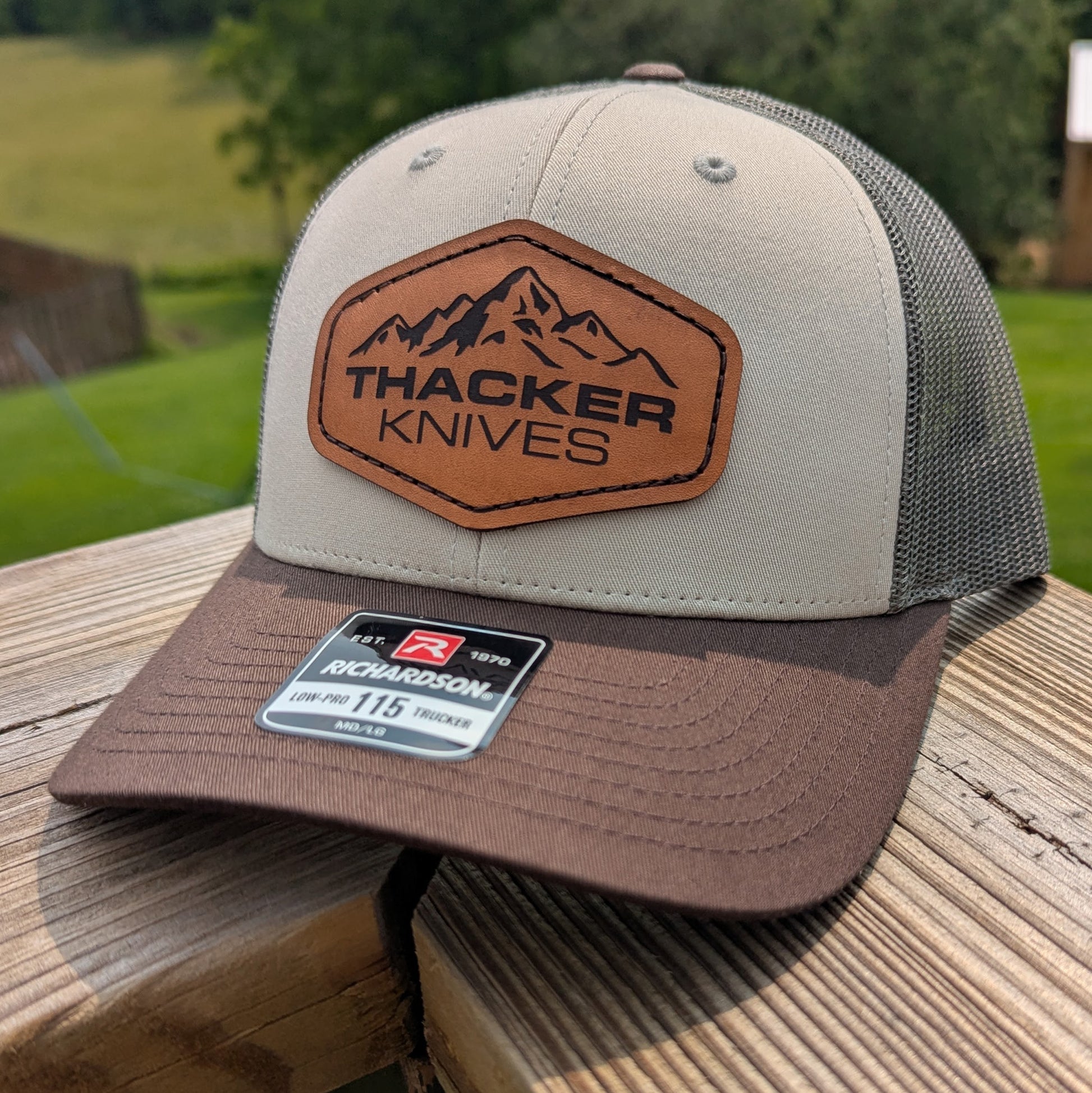 Show some love for Thacker Knives with this handsome trucker hat. Stylish with a leather patch of the Thacker Knives logo stitched to the hat. This model is the Richardson 115 Low-Pro Trucker in 4 different colors.